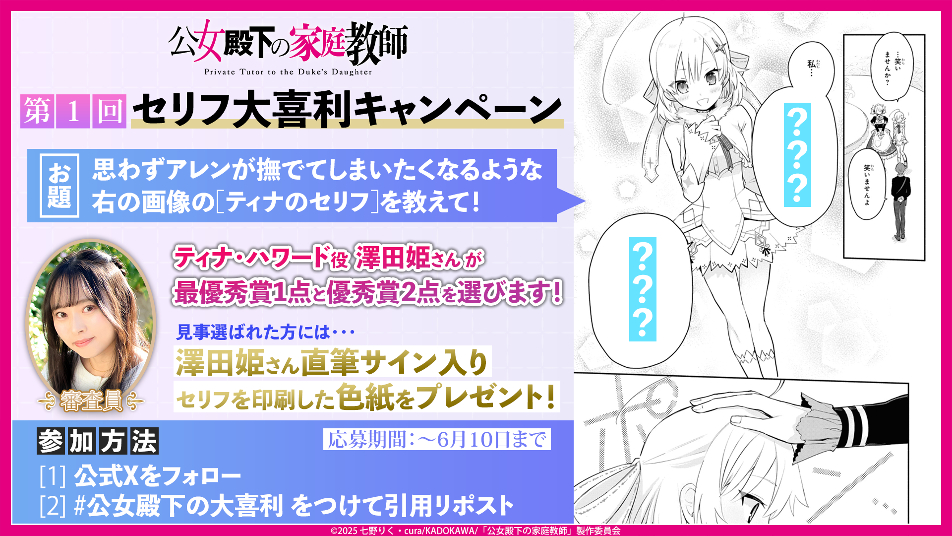 ①TVアニメ『公女殿下の家庭教師』公式Xアカウント(@koujo_anime)をフォロー